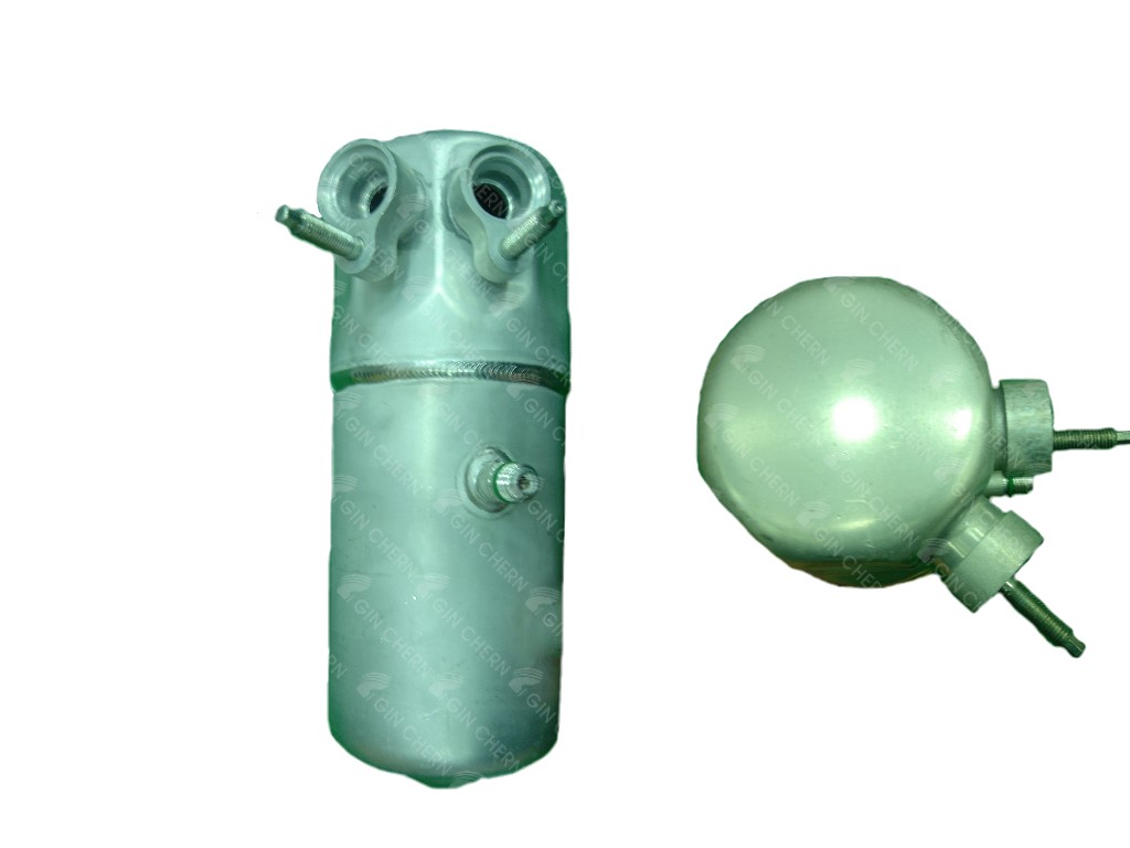 The accumulator is placed at the evaporator outlet and is used to separate liquid refrigerant from vaporized refrigerant, as well as remove the moisture contained in the refrigerant.
